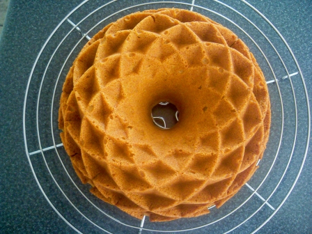 Con mucho cuidado dar unas suaves sacudidas al molde, de derecha a izquierda y de arriba a abajo, esto es para que se desprenda mejor. Un truquito, cuando vean que la parte de arriba del queque está separada de la pared del molde, eso es buena señal, pero igual hagan todo con cuidado y no se olviden de cerrar los ojos al momento de desmoldar…ja,ja,ja…