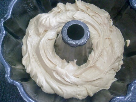 Verter la mitad de la masa en un molde de Bundt Cake de 12 tazas (o cualquier otro molde con hueco en el centro) debidamente engrasado.