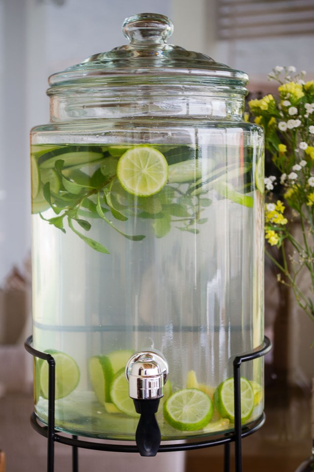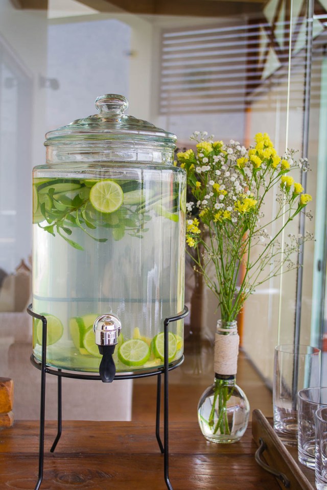 No hay cantidades exactas, hay que jugar con los gustos de cada uno, pero esto es lo que usé para hacer 5 litros de Agua Detox.