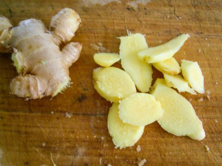 Esta es la parte más complicada, porque para poder usar el kion hay que pelarlo, es el único elemento que va sin cáscara. Así que con paciencia lo pelan y lo cortan en rodajas. A mí me gusta mucho el sabor del kion, así que le puse toda esa parte de la raíz que ven en la foto.