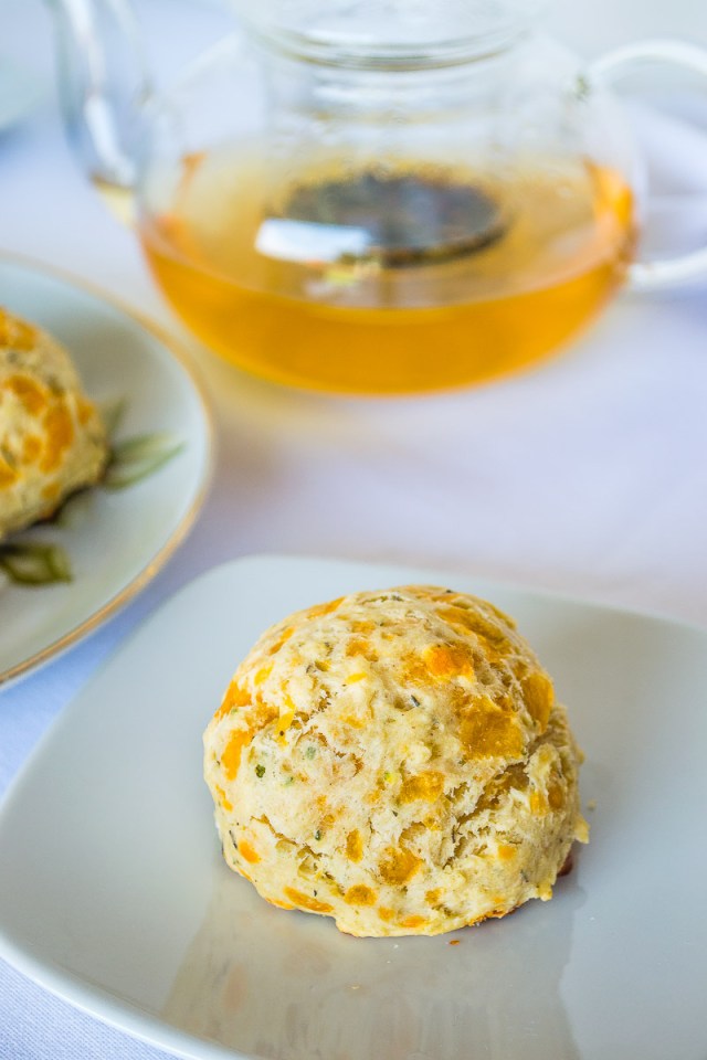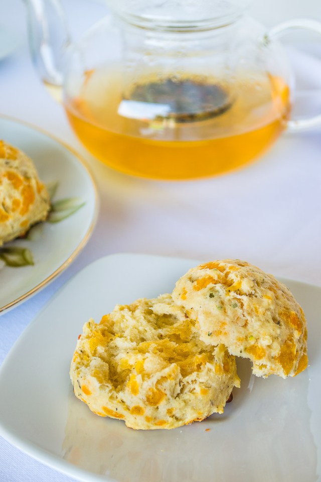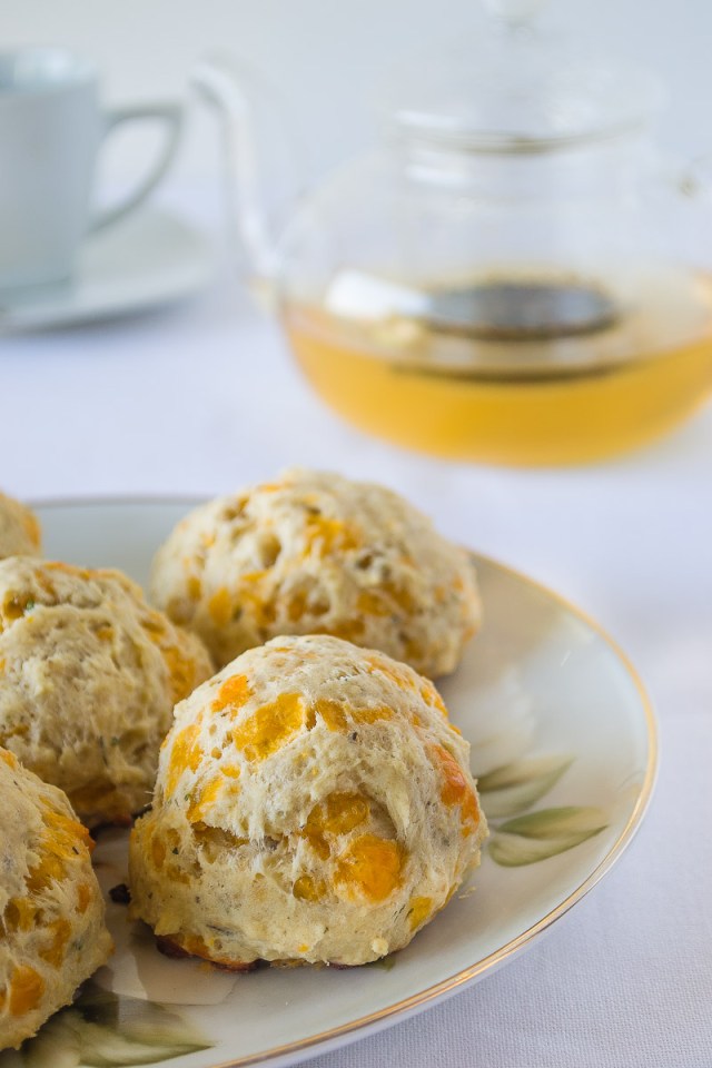 Receta inspirada en: Cheddar-Herb Drop Scones de Tea Time magazine