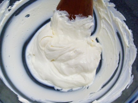 - En un tazón colocar el queso crema y batir con una espátula de madera.