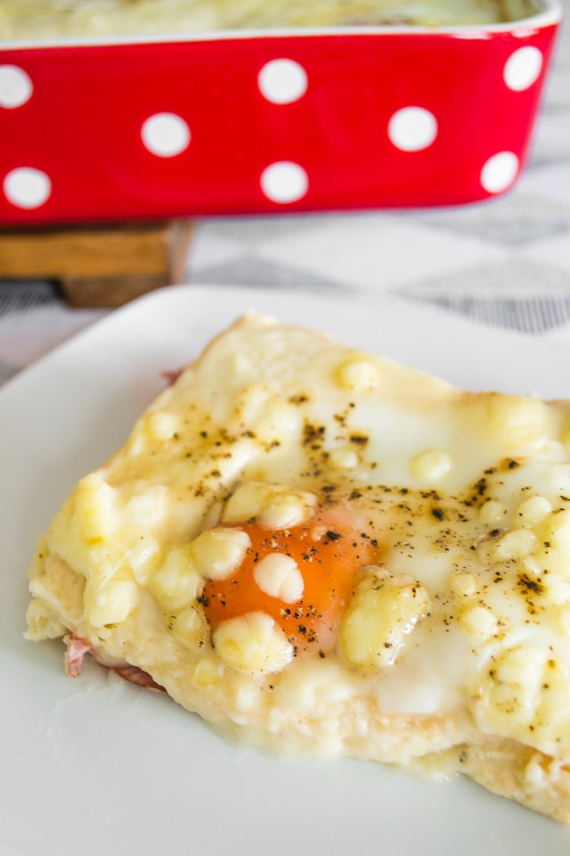 Receta inspirada en: Croque Madame Casserole with Ham and Gruyère de Epicurious.