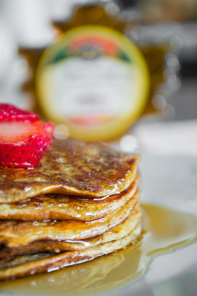 Para servir pueden ponerle rodajas de plátano o cualquier otra fruta fresca, y para un toque final, un buen chorro de miel de maple, o miel de abejas, o lo que más les guste.