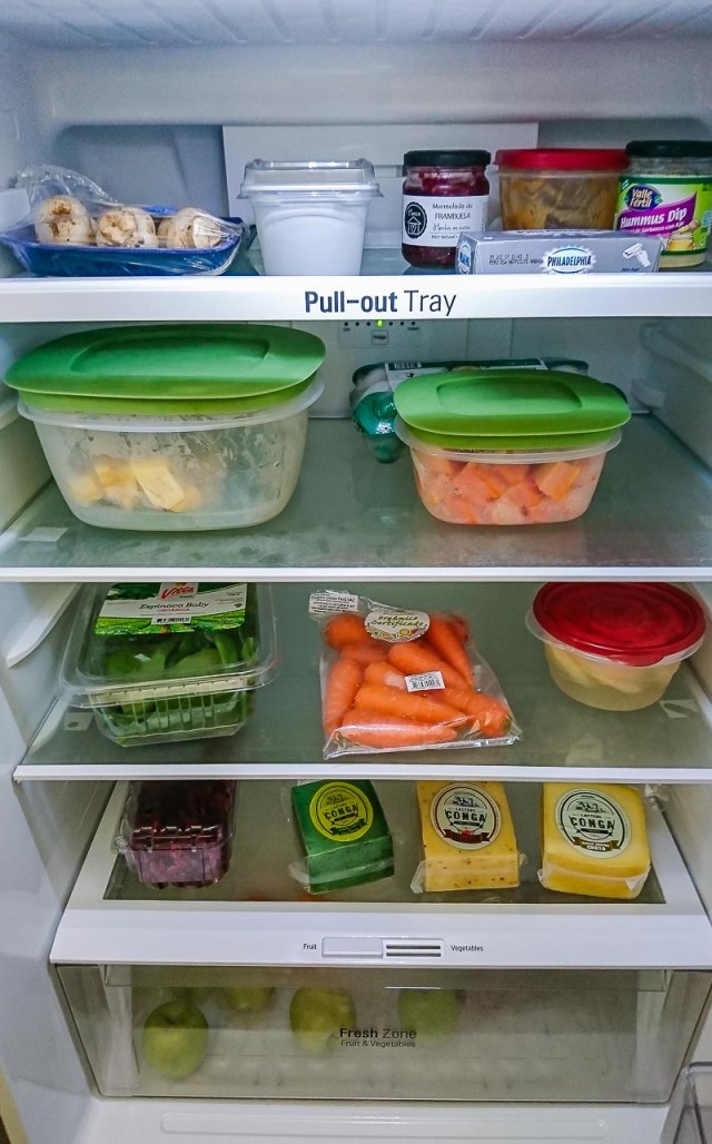 Pero entonces llegamos a mitad de semana y si miras detenidamente tus frutas y verduras te darás cuenta que han cambiado de color, y algunas hasta se han arrugado un poco. Pero no las puedes reponer, tienes que esperar hasta el sábado.