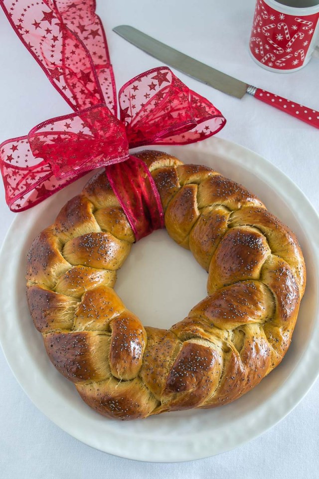 Receta inspirada en: Orange, Vanilla & Cardamom Challah Wreath + White Chocolate Glaze de The Kitchen McCabe.