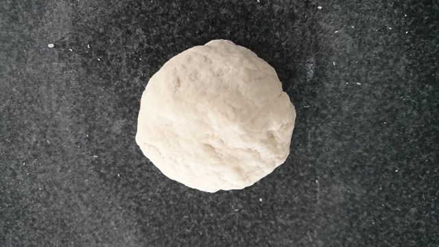 Con la mano amasar un poco hasta conseguir que la masa se haga una bola. Si la masa está muy seca, agregar un poquito más de agua, si está muy pegajosa, un poquito más de harina.
