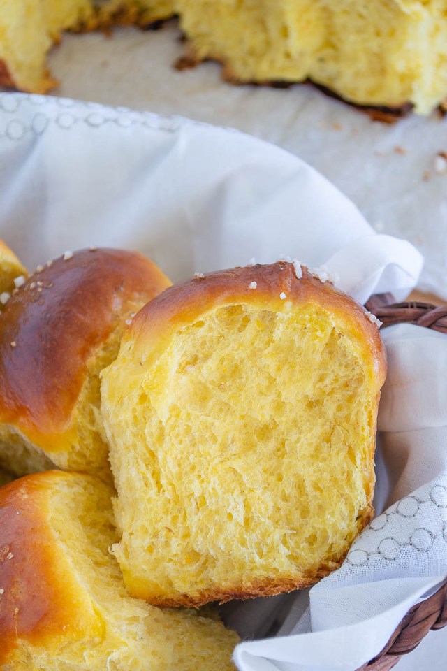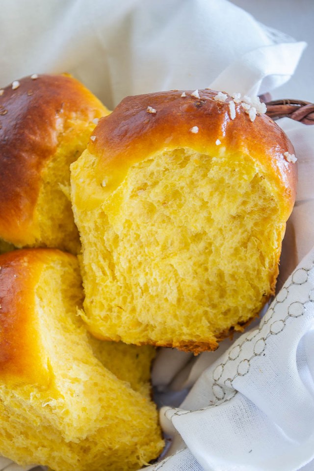 Ahora probaremos con otro ingrediente, el camote, que le da un sabor y un color maravilloso a estos pancitos. Así que, con ustedes, los Pancitos de Camote.
