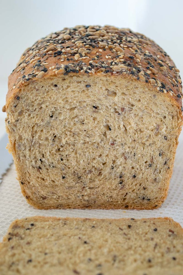 Para que no se hagan problemas con las semillas, pueden usar las que ustedes quieran. En mi caso he usado cinco: chía, linaza, ajonjolí (sésamo), ajonjolí negro y semillas de girasol y las he puesto tanto dentro de la masa como sobre ella. Si gustan, pueden ponerle solo un tipo de semilla, o pueden ponerle otras.