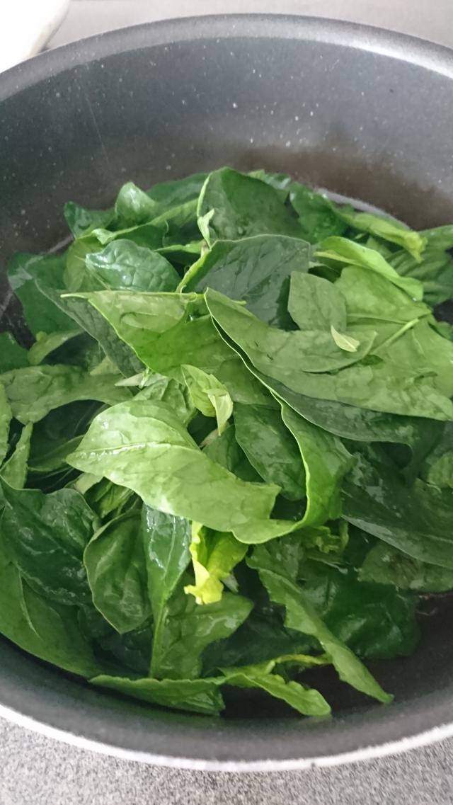 4. En el aceite saborizado con ajo, poner la espinaca y albahaca, remover bien y retirar ni bien se hayan empezado a reducir.