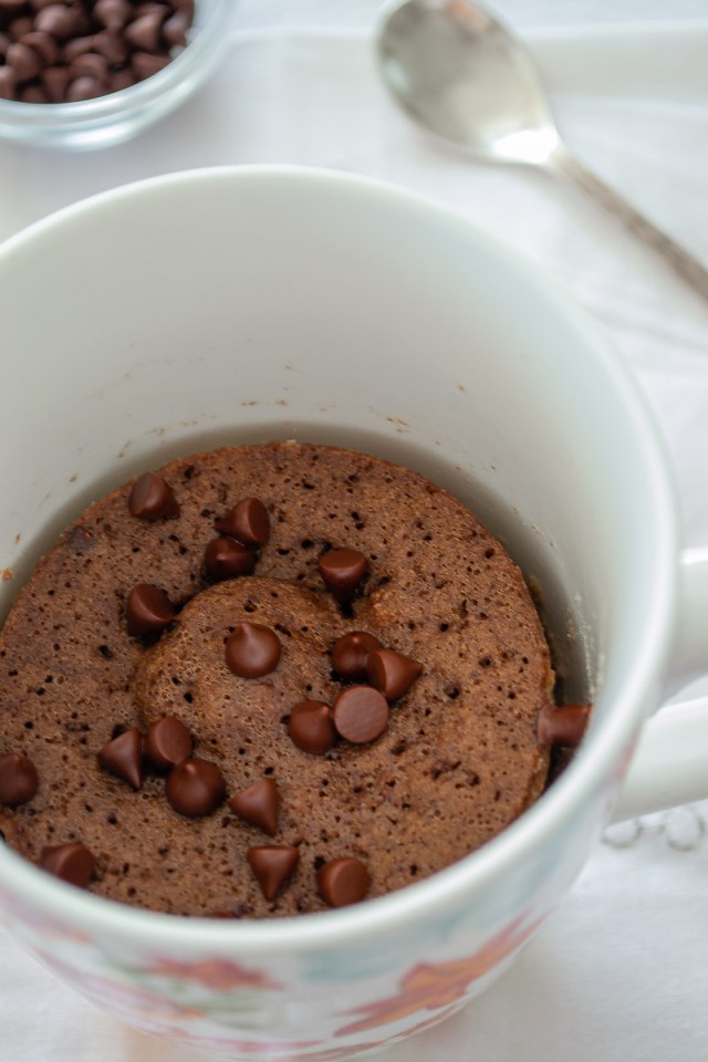 - Si la mezcla se hizo en un tazón, colocar la masa en la taza y cocinar en el microondas a la potencia máxima por 50 segundos.