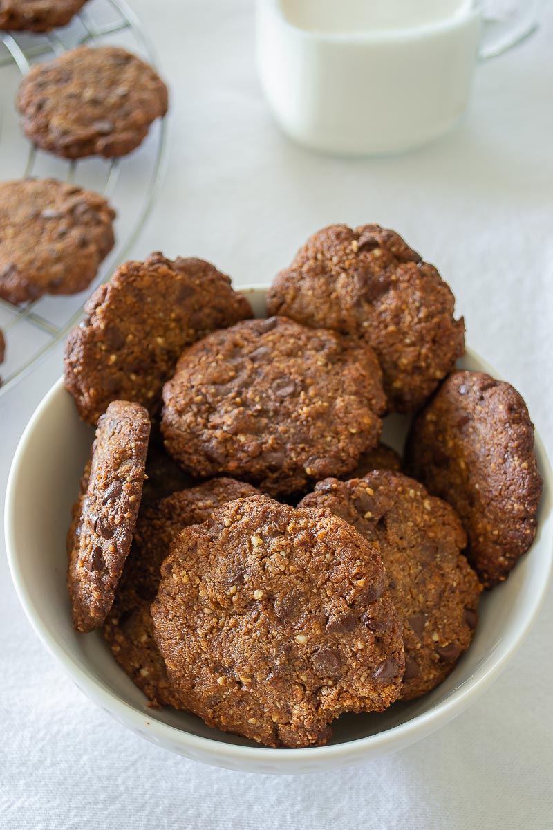 Receta inspirada en: Almond Butter Chocolate Chip Cookies de Sally’s Baking Addiction.
