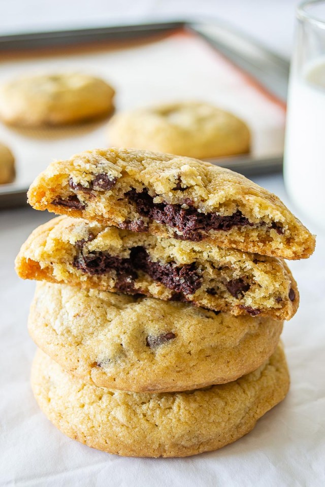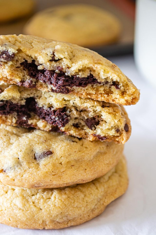 Hace tiempo estábamos antojados de hacer estas galletas en casa, pero mi stock de chocolate estaba por acabarse y lo que tenía no alcanzaba para hacerlas, porque no solo las queríamos rellenas de chocolate, también las queríamos con chispas de chocolate.