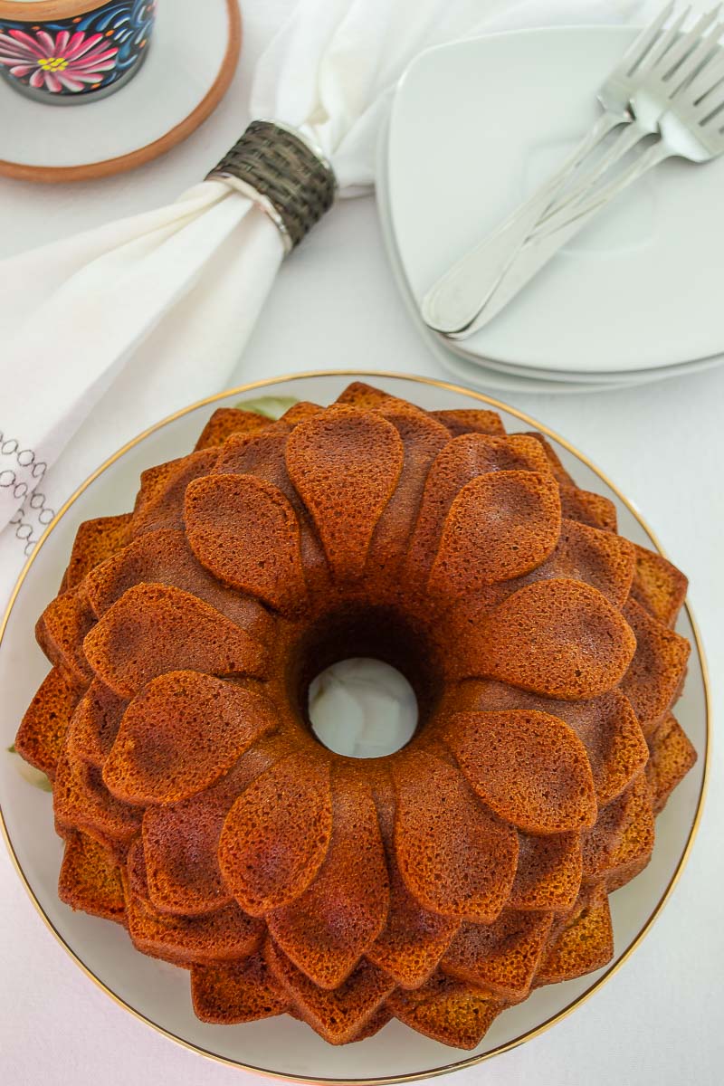 - Engrasar y enharinar un molde de 10 tazas de capacidad, o colocarle aceite en spray.